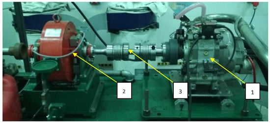 Test stand for determining the rotational characteristics: 1—Wankel 407 TGi engine, 2—eddy current brake, 3—clutch.
