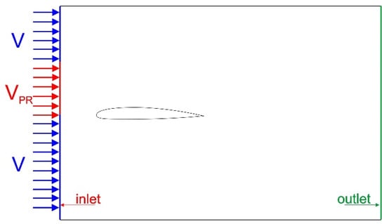 Boundary conditions for the aerodynamic analysis of the wing, where V—flight velocity, VPR—propeller stream velocity.
