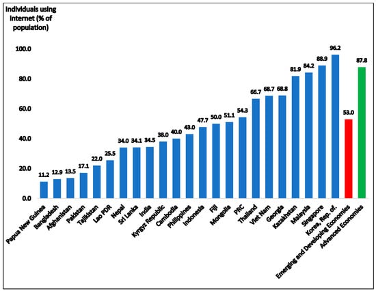 Share of population with internet access; Source: World Bank. https://data.worldbank.org/indicator/IT.NET.USER.ZS (accessed on 26 February 2021).