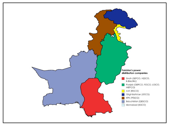 Pakistan’s electricity is generated and distributed by two vertically integrated public organizations: the Water and Power Development Authority (WAPDA), which is in charge of producing hydroelectricity that is supplied to the consumers by the power distribution companies (DISCOS), which work under the Pakistan Electric Power Company (PEPCO). The main power distribution companies in Pakistan are displayed in Figure 1. The power distribution companies greatly rely on large and recurrent public subsidies.