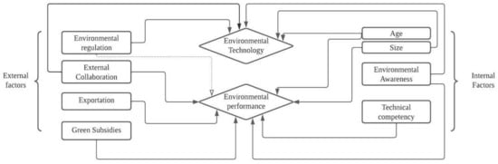 An abundant empirical literature has aimed to identify the different factors that influence the diffusion of environmental technologies. This literature is constructed around two main theoretical contributions: “the double externality problem” [3] and the Porter Hypothesis [4] which underline the central role played by environmental regulation and the development and diffusion of environmental technology on the one hand, and, on the other, by improving firms’ environmental performance. However, in the particular context of developing countries, where environmental regulation is less established, results can differ depending on the regulatory approach applied and on the perception of the stringency of environmental regulations [5,6,7]. As reported by Dhrifi and Sahli [8,9,10], who explored the role of institutions in environmental protection, poor institutional quality in developing countries can compromise the effective implementation of environmental policies, thus preventing the achievement of environmental targets. The uncertain effect of environmental regulation on the environment requires researchers and policy makers to understand why some companies fail to meet their environmental objectives while others do.