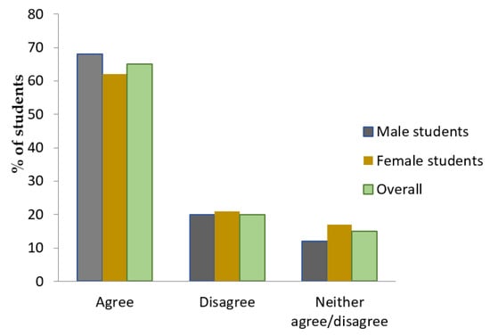Most of the students surveyed had a high concern about climate change and a majority of these students showed much interest in tree planting as a possible strategy for mitigating climate change and making campuses green, clean, and sustainable. This awareness of students is important because climate change impacts are expected to be severe in Africa [58]. Additionally, scholars argue that the knowledge and awareness of climate change among students is of paramount importance, as it equips them with skills to deal with its future impacts [59,60]. However, results highlighting gender differences in tree planting were observed. These differences can be explained by distinct men’s and women’s knowledge and roles in relation to the management of forests and the use of tree resources [60].