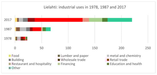Number of uses and industries in Lielahti area have increased in time. Data from 1978 through 2017.