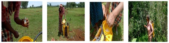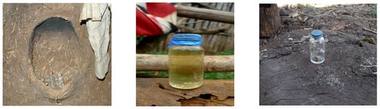 In order to capture the ‘doings’ of the respondents in relation to pesticide use, field observations were carried out in female-headed farms and homes. We observed the places where pesticides were purchased, stored and disposed of, pesticide usage in the field, garden, and home, the use of equipment, the division of labor in the household and agriculture, personal hygiene, and the elements involved in their practices. The field observation was complemented by photographs that captured the material elements in which pesticide use practices were enacted. While text materials and interviews are central to answering questions on what is enacted, visual tools are becoming more prevalent to answer what is actually observed on the ground [90] and also supplement data from surveys [91].
