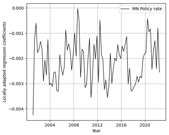 The estimated regression coefficient from the linear regression is consistent with the economic theory for MN Policy rate. We can now see that our proposed model showed how the effect of MN Policy rate changes dynamically on inflation while keeping this consistency.