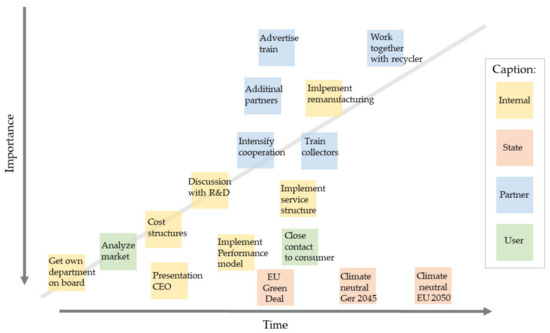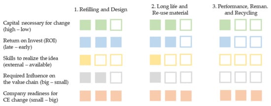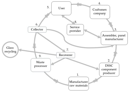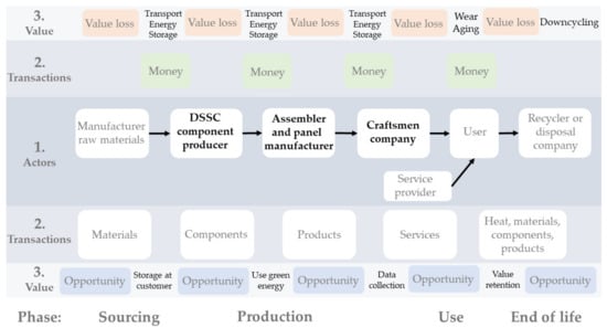 The novelty of this publication is the holistic approach to add business models to the sustainability concept of DSSCs. We used the Circo method, which is a scientific framework developed by C. Bakker et al. from the Technical University of Delft []. This framework helps companies and product designers to transform or redesign a linear product to a circular one and couple it with circular business models [].