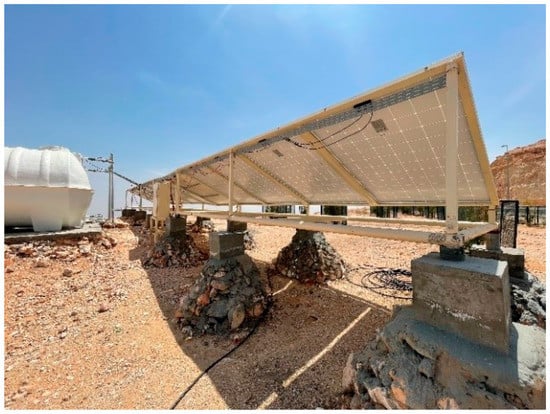 Current-day solar panels have become very popular worldwide since they generate electrical power from sunlight, which is converted to a sort of energy, scientifically called solar energy [42]. Solar panels were first noted by a French scientist in the 19th century. He was able to observe the light particles, known as photons, in sunlight that affect a specific type of surface differently, such as silicon. This discovery allowed further investigations to take place into this matter. As years followed, it was also developed further by Albert Einstein, where he was able to identify the photoelectric effect, as he named it. The effect takes place differently depending on the surface hosting the light particles of sunlight. The discovery of this effect saw the possibility of absorbing the photons and capturing the electric charges on a semi-conductor surface, resulting in an electric current. Hence the name, the photoelectric effect [42]. One particular aspect to emphasize is that this effect has been utilized in mini semi-conductor materials where it allows the capturing of light particles to create an electric current and voltage that can pass to a connected battery to save the captured electrons and create a voltage. These semi-conductors are called photovoltaic cells, which make up solar panels [43]. Solar panels consist of small photovoltaic cells connected to each other, creating solar panels that generate solar energy from voltages derived from the photons of sunlight [42]. More importantly, when combining these solar panels together, we create a solar array that includes multiple solar panels. On a larger scale, there are real applications of solar energy, which have been used in many countries in different sectors. For instance, it has been used privately in the United States of America by farm owners in the south, where they were given the chance to invest in their farming lands [44]. Thus, instead of planting and cropping, they created “solar farms” that included hundreds of solar panels being laid down next to one another, generating solar power that goes directly to the utility grid and large batteries to be sold to the government. In Europe, solar panels have been regularly bought by homeowners to be implanted on the rooftops of their houses to generate solar power that is sold to the governmental electricity grid [45]. In this case, solar panel owners generate and sell electricity and make a profit out of it. However, they pay for their electricity bills as normal. People nowadays have more confidence in investing in sustainability initiatives as more global electronics companies are manufacturing and selling solar panels and investing in green energy. For instance, the famous electronics company LG has been selling solar panels based on different options to its customers in the United Kingdom [46]. In addition to LG, a competitive number of companies have enrolled in the same field of green energy. This has allowed for more research and development in this area, as well as allowing concerned scientists to further explore and investigate the efficiency and liability of the panel [47]. In the United Arab Emirates, local initiatives have taken place in some sectors to save the environment, for example, the applications of photovoltaic solar panels in the UAE can be seen in many agricultural projects in the city of Abu Dhabi. As an example, the agricultural system on Hafeet mountain relies solely on solar panel arrays due to the bright sunlight that hits the mountain without any blockage, which is supposed to generate enough electricity to power the water pump connected to the tanks above placed on the 1200-m-high mountain. Its main purpose is to absorb sunlight and generate electricity that will pass through a distribution board to regulate the electric current flowing to power the water tank pump, which is connected to multiple pipes, creating the water network that is used in this unique agricultural project, as demonstrated in Figure 1 and Figure 2.