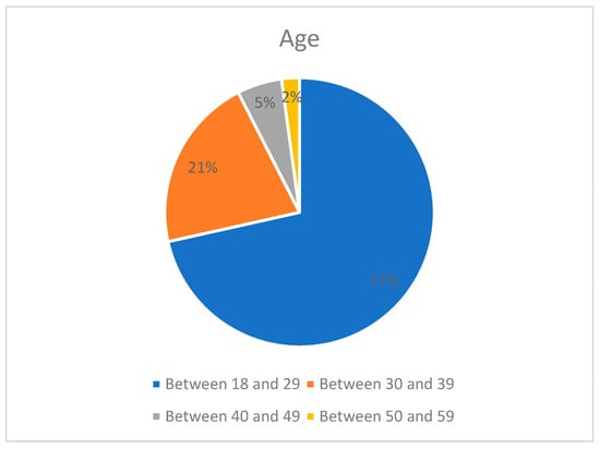 The respondents involved in the study of the development of solar energy in Abu Dhabi were local individuals in the range of 18–59 years old. Two percent of the respondents were between 50 and 59 years of age and 5% were between 40 and 49, whereas 21% were between 30 and 39, and 72% were aged between 18 and 29 years old, as shown in Figure 3.