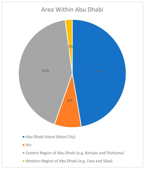 One of the advantages the UAE has is being the only country in the world with the most sunlight exposure. This fact drives new and current opportunities to be further researched and developed into tangible methods to generate solar energy, hence reducing fossil fuel consumption through the generation of alternative clean energy that produces electricity more efficiently [41]. According to a recent study that reviewed the clean energy projects in the country, solar energy is believed to be the most abundant form of clean energy in the UAE. Relatively, photovoltaic technologies are noted as a growing source of power that is achieving the current local requirements for energy consumption. As a further demonstration, the UAE government is constantly proliferating clean energy generation projects in the country to familiarize locals and to achieve a sustainable energy system in the future [41]. In return, the ambition has also been expanded to achieve a clean environment with a reduced carbon footprint and the reduction in other pollutants that negatively affect the ecological system. Among increasing concerns about energy generation risks worldwide and a predicted energy catastrophe, which might become inevitable to face if the current clean energy opportunities are not taken into further consideration, it is very important to indicate the serious steps that are essential to transition into clean energy generation methods. According to the study, which discusses UAE solar energy projects, Abu Dhabi covers 84% of the total land area in the country, ultimately enabling the capital to utilize the high sunlight exposure to convert it into electrical power to be consumed by residents in the cities [41]. Moreover, the review study stresses the need to widen research on solar energy in universities and institutions as a necessity to evolve the current solar energy technology and applications in the country. Photovoltaic panels can comparably reduce the current costs of generating electricity due to the direct process of using solar panels to capture sunlight and the ability they have to transform sunlight particles into electricity with low costs because they only require the solar material to be set up, which, in sequence, requires further research work in order to seize the maximum amount of renewable energy possible.