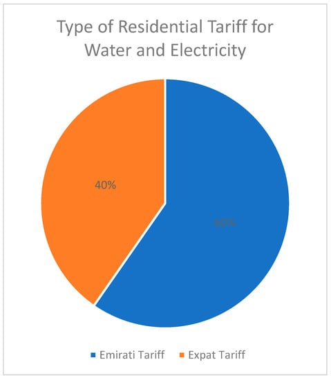 The residential tariffs in Abu Dhabi consist of two types as discussed previously, with variations in terms of electricity consumption tariffs between locals and expats. In this survey, 60% of respondents had the local tariff and 40% had the expat tariff, as shown in Figure 8.