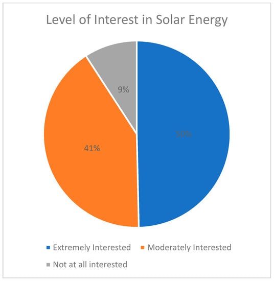 The rate of interest of solar power as demonstrated by the pie chart below shows that the majority of the respondents were extremely interested as the responses consist of only 9% being not at all interested in solar energy, 41% being moderately interested, and 50% being extremely interested in solar energy; thus, the majority of the respondents in the city of Abu Dhabi. As shown in Figure 10.