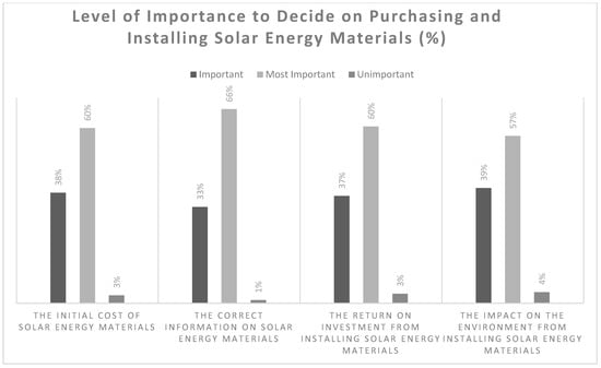 Respondents’ level of importance to decide on purchasing and installing solar energy materials graph.