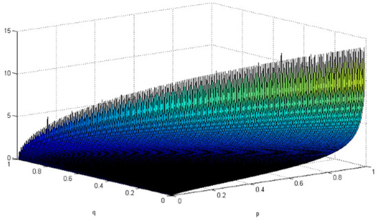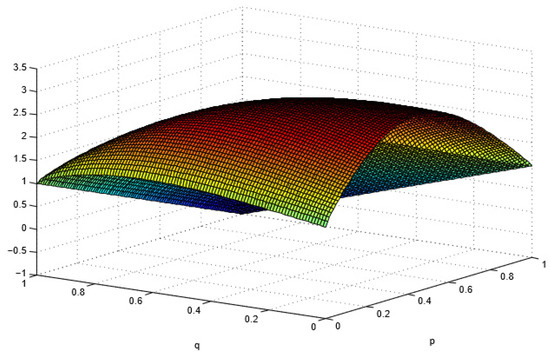 By calculating the above Equation (8), we obtain ,. and , and can be regarded as two-variable functions of and when given a certain value. Letting and , the graphs are shown as below: