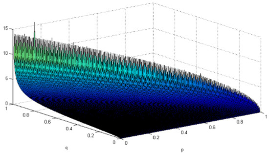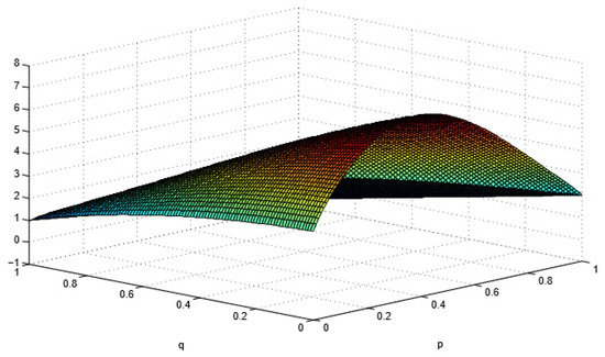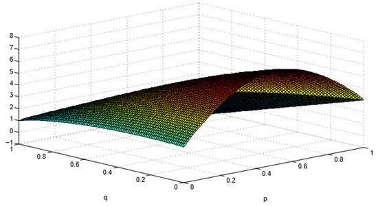Figure 3 shows that, when p is gradually close to 0—that is, when the importance of timely completion becomes lower—the algorithm engineer’s LOE in completing tasks on time is also low. With the increase of p and invariability of q (or vice versa), is also increasing; that is, completing the company project on time is more important than ensuring the quality of the project. Under this circumstance, the algorithm engineer’s effort to complete the project on time will gradually increase. When p increases to close to 1, it means that completing the project on time is very important. Meanwhile, the LOE on project quality and difficulty coefficient will be significantly reduced, which will eventually lead to a situation in which quality is ignored to complete the project on time. The actual survey revealed that, when there is a temporary emergency situation at the company and multiple projects must be completed within a certain period, algorithm engineers often tend to choose projects with lower difficulty. At the same time, when new projects must be completed in a very short time, the completion result is often unsatisfactory and includes many loopholes.