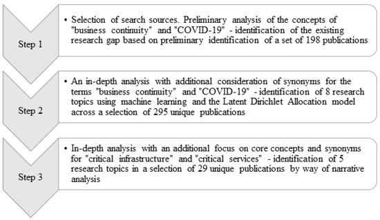 Business continuity management (BCM) is a management process based on a risk and business impact assessment to build organizational resilience [9]. CI and KS operators treat BCM as a mandatory part of their core business. Therefore, they can be considered as the group with the highest culture development of business continuity plans, protection measures, and social impact in the security field. Given the above, it is reasonable to investigate the effectiveness and sufficiency of the protections they applied during a pandemic. The systematic literature review shown in Figure 1 is subordinated to this thesis.