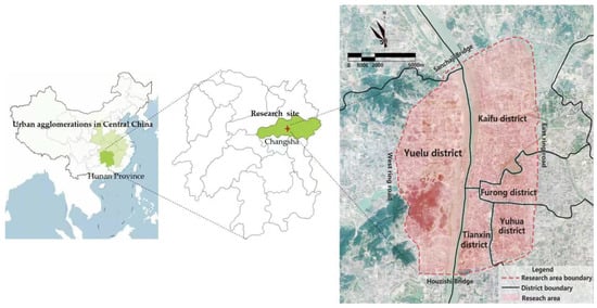 The green space around the building of the Changsha Civil Affairs Bureau was selected for the study of enclosed greening pattern, the green area around the building of the Standing Committee of Changsha Municipal People’s Congress was selected for the study of centralized greening pattern, the green space in the north of Jindiyuan was selected for the study of parallel greening pattern, the green space in the north of Keda Jingyuan was selected for the study of interspersed greening pattern, and the green space in the southeast of Changsha Xintiandi was selected for the study of scattered greening pattern. each green space has a total area of about 2800 m