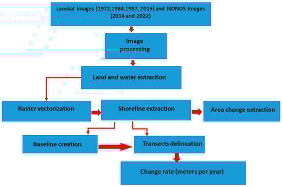 - Dewidar, K.; Bayoumi, S. Forecasting Shoreline Changes along the Egyptian Nile Delta Coast using Landsat Image Series and Geographic Information System. Environ. Monit. Assess. 2021, 193, 429. [Google Scholar] [CrossRef]