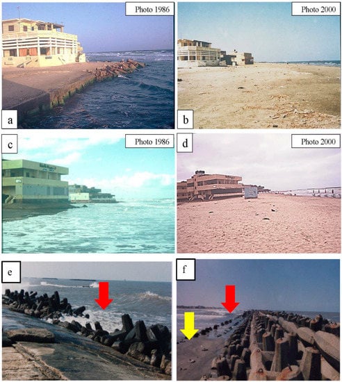 - Fanos, A.M.; Khafagy. A.A.; Dean, R.G. Protective Works on the Nile Delta Coast. J. Coast. Res. 1995, 11, 516–528. [Google Scholar]