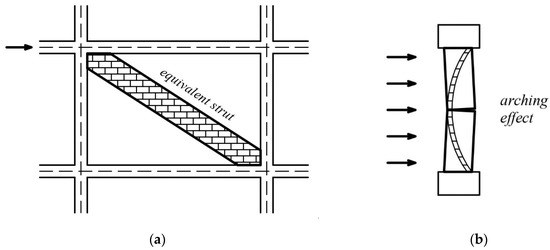 Simplified schemes for the seismic response of MIs: (a) equivalent strut (IP); (b) arching action (OOP).