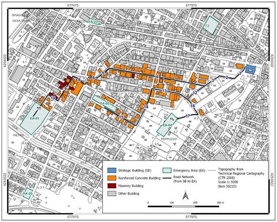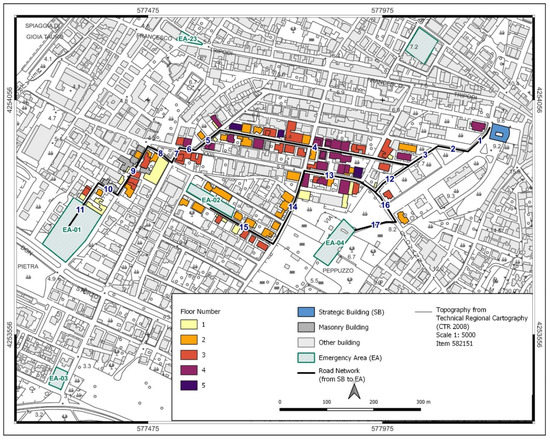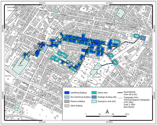 To improve the effectiveness of the emergency measures, it is also necessary that the emergency plans contain in-depth information regarding the main urban elements, which when a hazard occurs must ensure the correct system functionality and response of urban systems. These elements are the strategic buildings (SBs), emergency areas (EAs), and strategic road network [3].
