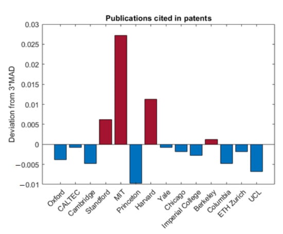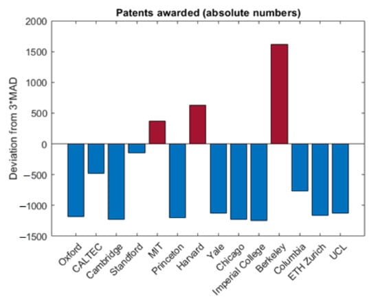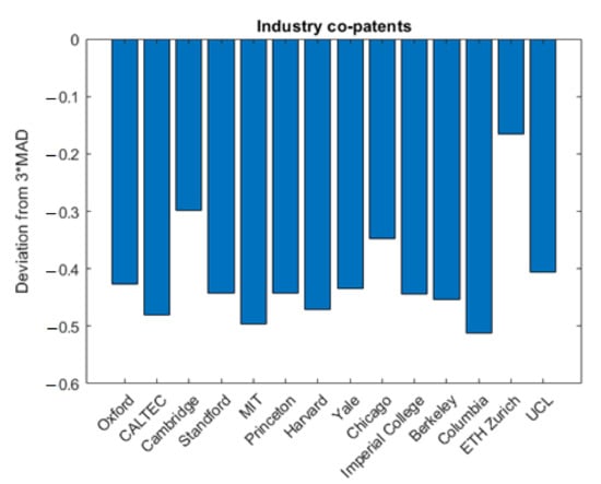 - As emerge from Section 3.4, only 2 university over 14 (MIT, Harvard) result to be stand out with respect to the remaining ones if all the three indicators, “co-publications with industrial partners”, “patent awarded (as absolute number)” and “publications cited in patents”, are jointly used;