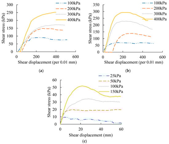 s) of the geogrid–soil interface under different normal stress conditions is shown in