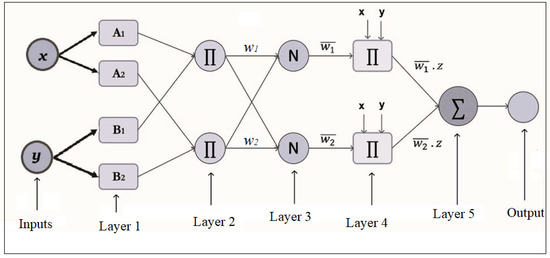 Figure 3. The five-layer architecture of the ANFIS model [69].
