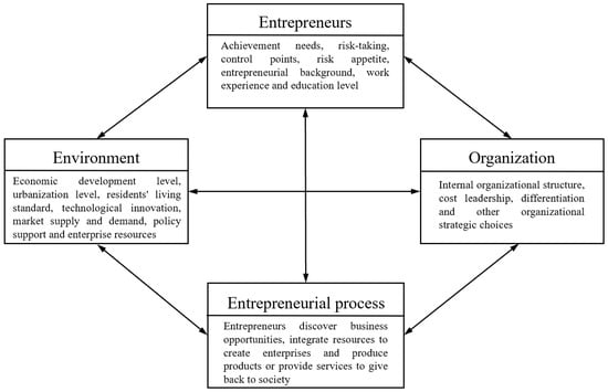The theory of entrepreneurship management, which is based on the interaction between different elements, has evolved from focusing on the characteristics of entrepreneurs to focusing on entrepreneurial opportunities, entrepreneurial resources, entrepreneurial organizations, and entrepreneurial situations. Similarly, showing a development trend has evolved from invoking a single element to multiple elements, and from static analysis to dynamic analysis.