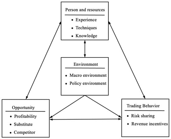 The TOE (technology, organization and environment) framework put forward by Tornatzky and Fleischer in 1990 was originally used to analyze the influencing factors of enterprises’ adoption of innovative technology, that is, the influence of the technology application situation on the technology application effect [44]. Researchers in the TOE framework generally believe that the decisive factors affecting the adoption of innovation can be classified into three dimensions: technology, organization and environment [45]. Among them, the technical level emphasizes the characteristics of technology itself and other related technical factors; and it focuses on whether technology matches the structural characteristics of the organization, coordinates with the application ability of the organization, and can bring potential benefits to the organization [46]. At the organizational level, it pays attention to the characteristics of organizational structure matching with technology, such as system, mechanism, capital investment and other factors, which include: organizational scale, business scope, formal or informal institutional arrangements, communication mechanism and idle resources of reserve savings [47]. The environmental aspect focuses on the situational factors that will affect the technological capability, including the market structure of the organization and the control policies of the external government [48,49].