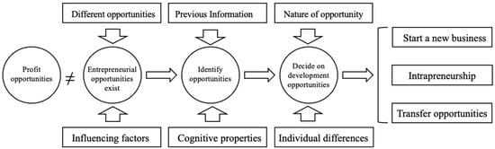 The above model only takes the identification of entrepreneurial opportunities as a starting point for assessing the factors that influence entrepreneurial behavior. Shane and Venkataraman (2000) put entrepreneurial opportunities throughout the entire entrepreneurial process and proposed a new entrepreneurial management model (see Figure 5) [62].
