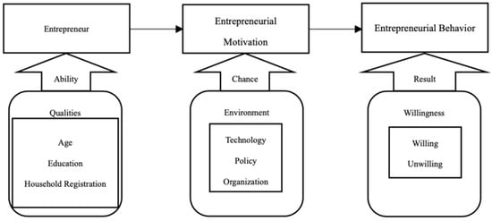The inherent system constraints, instability of change, strong supply chain constraints, farmers’ own capacity constraints and the ability to access internal and external resources for rural entrepreneurship all affect the scale and extent of rural entrepreneurship development in China [21]. As the main driving force behind rural entrepreneurship, the family background, age, working experience, mastery of core technology, number of years of entrepreneurship experience and regional differences will affect the choice of model for farmers’ entrepreneurship. At present, the majority of China’s farmers’ entrepreneurship is imitation entrepreneurship rather than innovation entrepreneurship [22]. Social capital can significantly affect the dependence of farmers’ entrepreneurial performance on social capital through the moderating variable of an entrepreneurial environment [23], while the richness of entrepreneurial, financial, association and interpersonal networks can directly affect entrepreneurial motivation [24]. In addition to social capital, risk attitude is also an important factor influencing entrepreneurship in the hometown. Notably, the attitude of migrant workers towards entrepreneurship determines the amount of investment they expect: those who prefer to take risks expect to invest more and tend not to return to their hometown to start their own business [25].