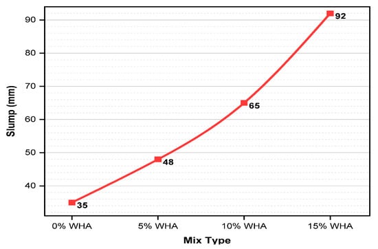- The slump values of concrete are highly dependent on the proportion of WHA. High levels of WHA increase slump results and, hence, the workability of the concrete mix.