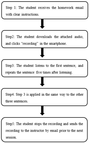 The ten one-to-one VSM instruction sessions were recorded with a Canon Powershot G3 X BK EU 23 camera (Tokyo, Japan). A De Zoom H4n Pro Handy recorder (Hauppauge, NY, USA) was used for the pre-test and students’ own smartphones were used for the online post-tests. The recording environment was confirmed to be quiet to ensure high-quality recordings. Students were allowed to use their own mobile phones, tablets or laptops to record their after-class activities. Their reading materials were selected from their regular workbook (Integrate Chinese I) [61], guaranteeing correspondence with their regular Chinese class content.