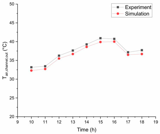 After determination of temperature values of air and PV layers, the absorbed heat by the air in the channel () and the produced power () are determined using Equations (21) [38] and (10), respectively.