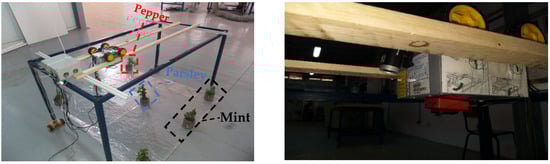 Table 3 shows that in the case of the Laptop we have a CPU→GPU transfer rate equal to 2.4829 GB/s and a GPU→CPU rate equal to 2.7274 GB/s. The Jetson Nano embedded system has values 3 times lower in the order of MB/s. Our system consists of two movements, the first for the box containing the embedded architecture and the cameras used for processing. The second part focuses on moving all metal supports to a new row. With this method, we can ensure that all the plants will be processed. Figure 13 shows an overview of our system.
