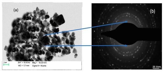 (a) TEM micrograph of ZnO nanoparticles (b) SAED pattern of ZnO nanoparticles.