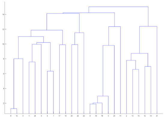Initially, the analysis of the Eurozone’s resilience to crises and disturbances was made with the help of a dendrogram shown in Figure 6.