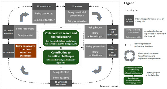 The living lab is embedded in what is referred to in the framework as the relevant context. We have looked for common ground regarding what applies in most living labs. However, each context will have its own specific characteristics in which not all capabilities will be equally important. What collaborative search and shared learning processes will involve in terms of concrete activities, and what transition is exactly aspired, will, therefore, vary per living lab as indicated in the framework. Since living labs operate in a wider social, economic, political, and environmental context, it is about a process of interactively exploring ways forward in addressing pertinent transition challenges in a particular context, matching needs with appropriate activities. It is meant to be a search process, in the sense that there is room for adaptively exploring ways forward. The term ‘pertinent’ refers to the transition challenges that this particular living lab seeks to address, and in relation to which it seeks to make a contribution. Because of the specificity of context and transition challenges, performance areas need to be specified accordingly. Some living labs will be operating in a highly complex context in relation to complicated transition challenges, whereas others focus on ‘low hanging fruits’ in a rather conducive context. This places different demands on collective capabilities.