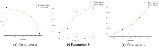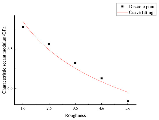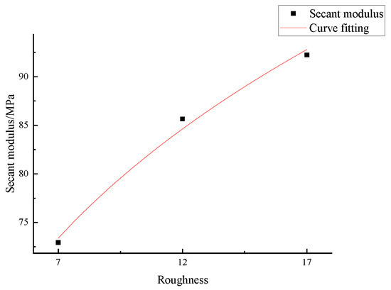 Table 5, a scatter diagram of secant modulus and joint roughness was drawn, and the corresponding curve was fitted, as shown in