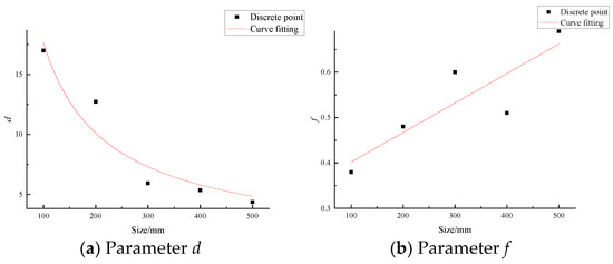 Table 7. Then, the relationships between parameters and rock size are fitted, as shown in