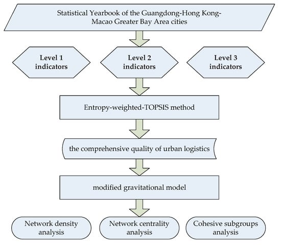 Therefore, this paper investigates the above important issues in the Guangdong-Hong Kong-Macao Greater Bay Area, located near the mouth of the Pearl River with a superior geographical location. This study constructs a comprehensive quality evaluation index system of city logistics. Additionally, this research applies the entropy-weighted TOPSIS method and social network analysis method to study the sustainable development of each city in the economically linked logistic network of the Guangdong-Hong Kong-Macao Greater Bay Area. It is of great value to examine the economic development and interaction behind the logistic network of the Guangdong-Hong Kong-Macao Greater Bay Area from a spatial perspective. Another contribution is the improvement of the logistics development quality in the Guangdong-Hong Kong-Macao Greater Bay Area in the context of “One Belt and One Road” to realize a mutually beneficial and complementary economic linkage development mechanism.