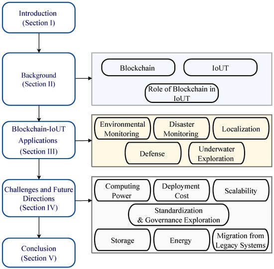 The rest of the the paper is organized as follows: Section 2 presents the required background knowledge relevant to blockchain, the IoUT, and its integration with blockchain followed by Section 3, which discusses various applications of the same. Section 4 presents the challenges associated with blockchain-integrated IoUT applications providing insight into the plausible scope of future directions of research. Figure 1 depicts the schematic outline of this study.