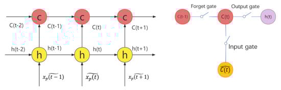 where , and are the trainable weights and biases, respectively, and, and represent the input gate, forget gate, and output gate, respectively. These three gates have the same shape with different parameters and, which need to be learned from the training process. The candidate state cannot be used directly. It must pass through the input gate and then be used to calculate the internal storage, while is not only affected by the hidden state but also by which is controlled by the forget gate. Based on , a layer of function is applied to the output information, which is constrained by the output gate. The gates enable LSTM to fulfil the long-term dependencies in the sequence, and by learning the gate parameters, the network can find the appropriate internal storage [28].
