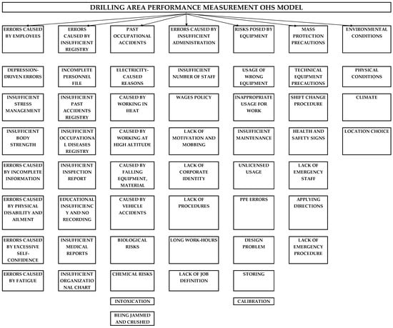 Taking the increase in renewable energy into consideration, an annotated chart and a hierarchic structure of criteria formed for drilling areas in the model proposed are given below. The main objective of the proposed index model is to find each determined criterion’s importance weight in the OHS performance. The process of defining the weight importance of criteria and subcriteria in the model proposed is as follows: