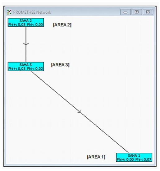 This method was developed by J. P. Brans in 1982, and first implementations were conducted in the same year. After two years, B. Mareschal and J. P. Brans improved the method, and, in their article published in 1985, put the program into its final form. In 1988, these authors proposed GAIA, a visual interaction module. Thanks to GAIA, it was possible to create detailed images regarding the results of problems solved via the PROMETHEE method []. The PROMETHEE method is widely and successfully used mostly because of its mathematical characteristics and practical usage [].