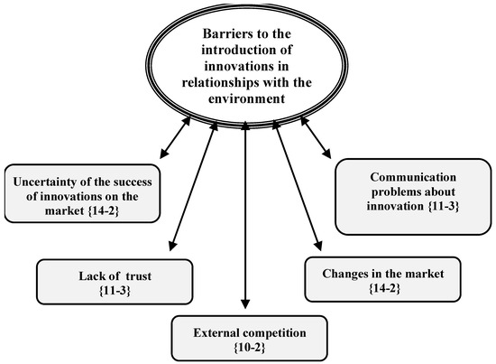 The respondents notice several key groups of barriers limiting the implementation of potential innovations: first is the awareness barriers for decision-making entities and cultural conditions, i.e., in the applicable system of organizational norms and values, then in the relationships between the members of the organization, and finally in the structural barriers occurring in their social environment, both economic and political. These results correspond positively to the results of other Polish and international studies on the barriers to innovation introduction [54,55,56,57,58].