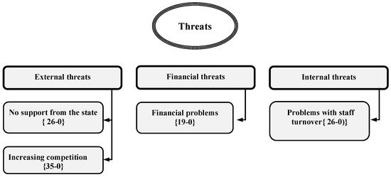 It should be emphasized that the barrier most frequently indicated that a hindered innovation introduction in surveyed companies was the decision-maker’s habits (code: habits 28-1). It is definitely an awareness barrier to agencies, which is an indicator of a tendency to implement morphostatic scenarios in organizations. The three next factors, most frequently indicated by FGI participants, for inhibiting innovation are also a manifestation of the existence in the surveyed companies of the dominance of awareness barriers to the agency, conducive to the implementation of morphostatic scenarios: (code: fear and fear of change 24-1), (code: envy 23-3), (code: human factor—no consent/support from superiors for introducing changes 21-2). It is worth highlighting that, according to the research of the behavioral economics team of the Polish Economic Institute, fear of change and risk-taking is the main variable affecting innovative activities for 80% of the Polish entrepreneurs surveyed [30].