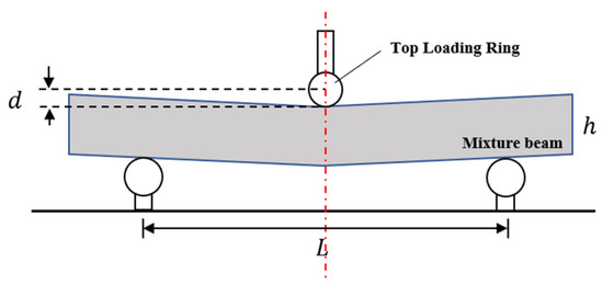 The schematic diagram of the 3 PB test for the asphalt mixture beam and the relevant parameters in Equation (2) are shown in Figure 4.
