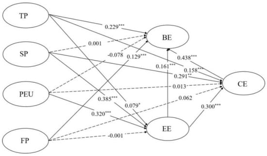 Path analysis of the research model. * p < 0.05, ** p < 0.01, *** p < 0.001.