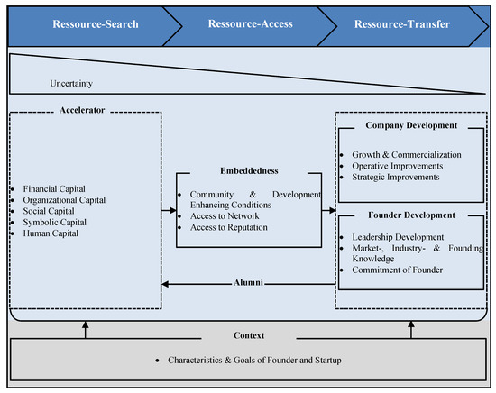 Due to their innovativeness and growth potential, startups have a great need for resources. However, through their own network, founders often have limited access to the resources they need, which restrains them from implementing their business ideas. Additionally, it is difficult for startups in early stages to find external investors due to the high degree of uncertainty regarding their prospects [6,11,12]. Accelerators support startups in overcoming these problems and speed up their development process [17] by helping them during the entire process of resource mobilization.
